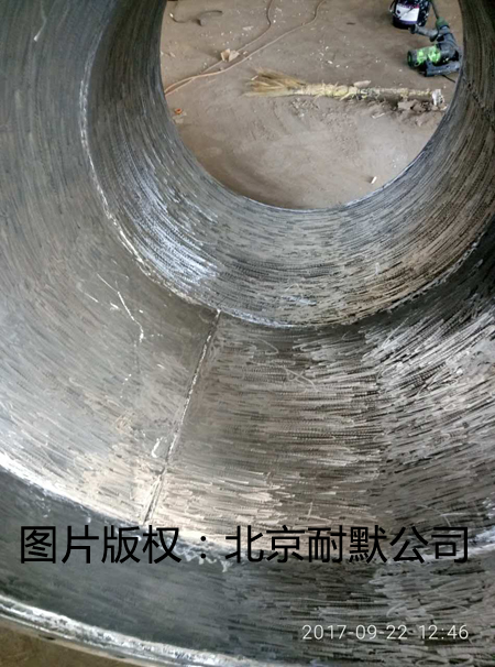 脫硫泵大小頭管件磨損沖刷很嚴重,采用過襯橡膠和貼陶瓷片修復保護,但是效果都不好,不出半年就脫落了,最終采用北京耐默公司生產的高分子陶瓷聚合物耐磨膠進行現場的修復保護,經過半年運行后打開一看,只有極少部分材料被磨損掉,企業安裝起來繼續使用,計劃一年后再打開只需要針對磨損變薄的部位再加厚一部分材料即可,極大的保護了泵體管道不受磨損,效果良好。