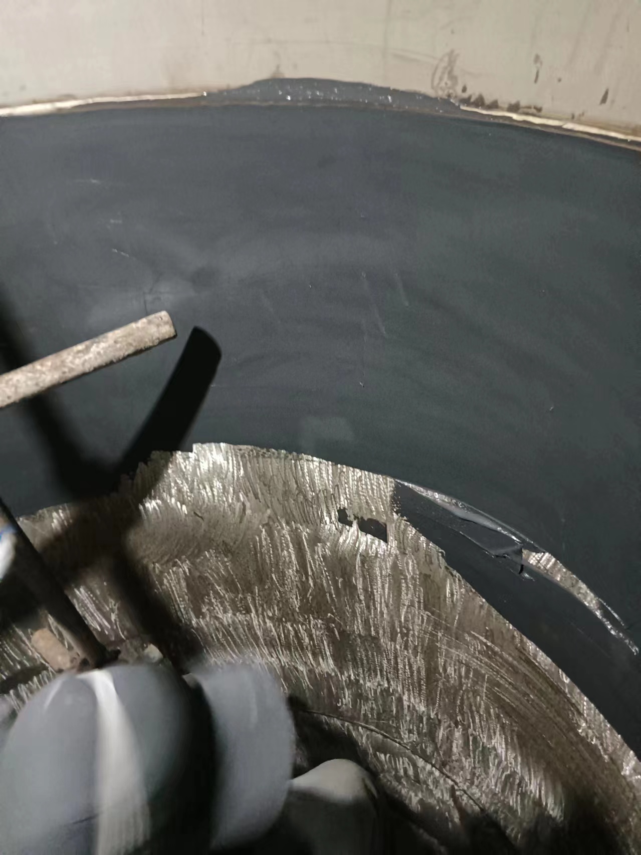工人師傅在對脫硫塔內壁進行表面處理,這樣做的好處可以增強涂層與基材的結合力度,涂層不會開裂和脫落。