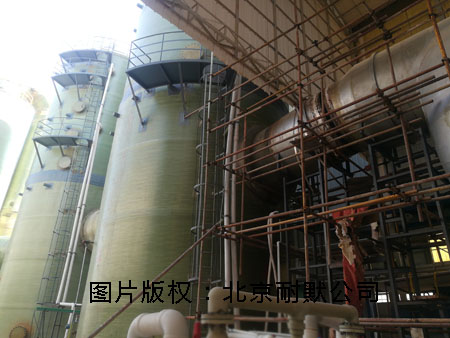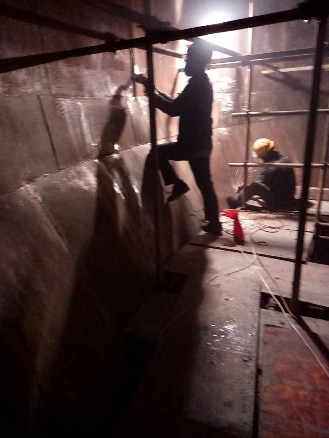 圖3)脫硫塔內壁采用KN17高分子陶瓷聚合物正在施工中