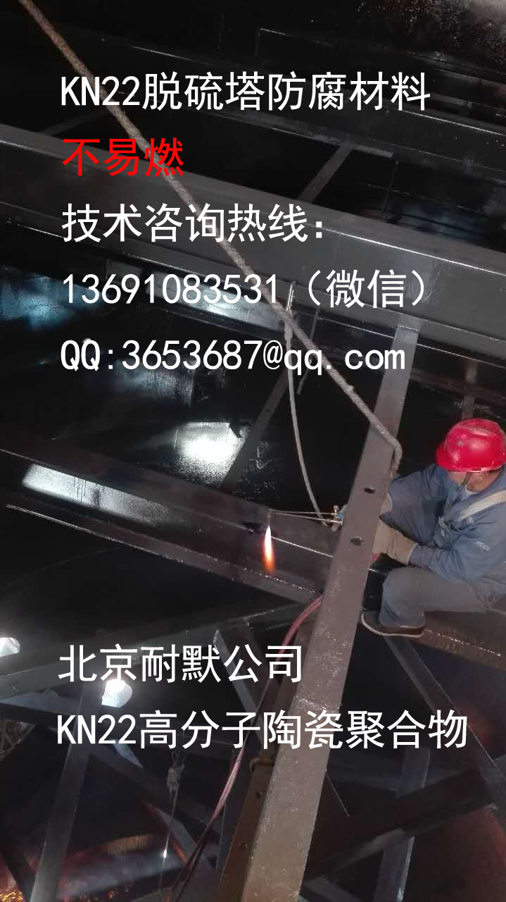 1:KN22脫硫塔防腐材料:KN22脫硫塔防腐材料可用于脫硫塔防腐施工,具有施工簡單,結合力強,不易燃等優勢,其結合強度可達到玻璃鱗片的十倍以上,噴涂工藝施工提高了施工效率,降低了施工時間,無溶劑成分不易燃是預防脫硫塔著火的。